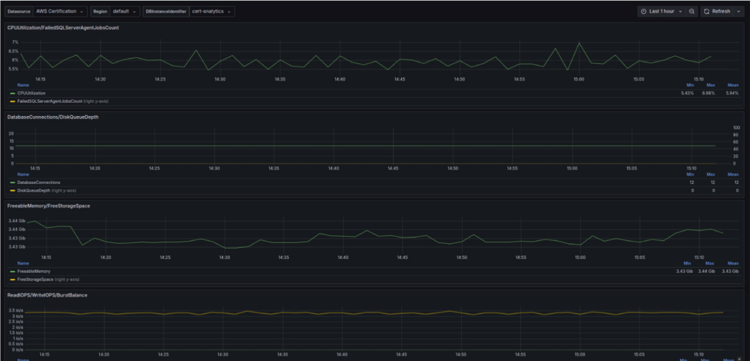 • Recursos principales de AWS: el stack implementado ha permitido monitorear cada uno de los recursos desplegados en la nube tanto BD, clúster de Kubernetes y Load Balancers que permiten medir el comportamiento de la infraestructura base de los servicios.de innovación.
